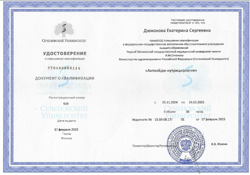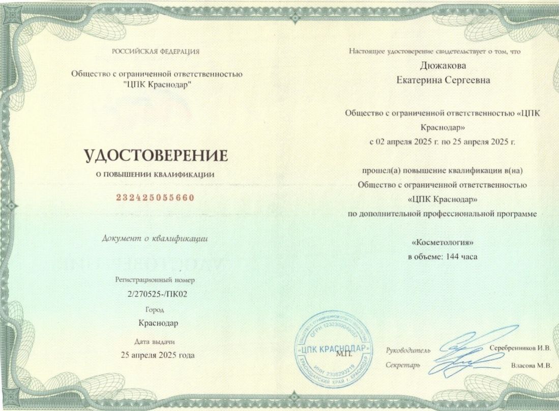 Дюжакова Екатерина - врач превентивной медицины, клинической лимфологии и эндоэкологии, дерматовенеролог, косметолог, антиэйдж-нутрициолог.