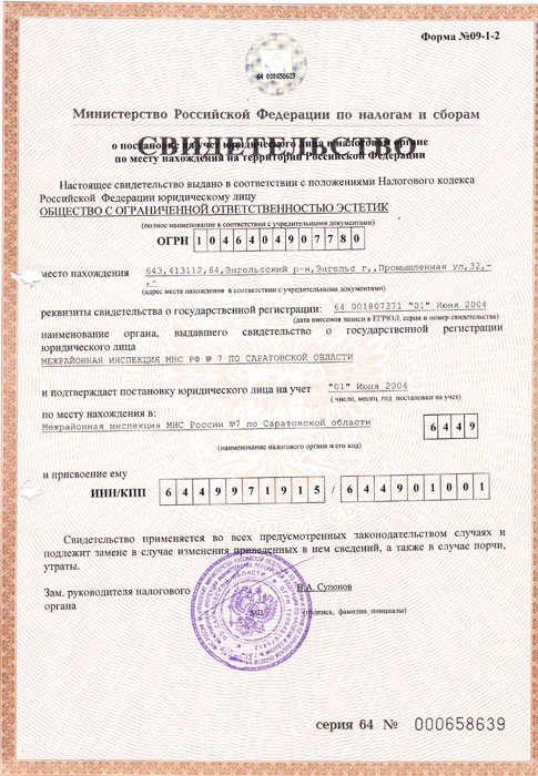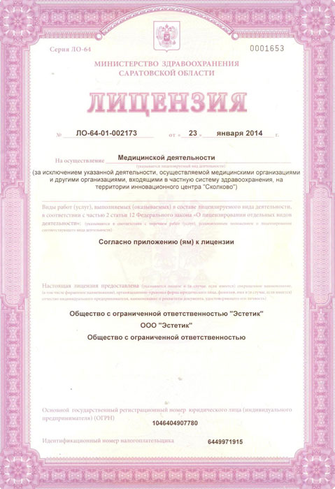 Юридическое название: Общество с ограниченной ответственностью «Эстетик»