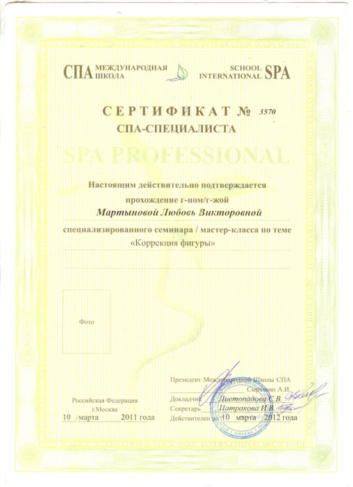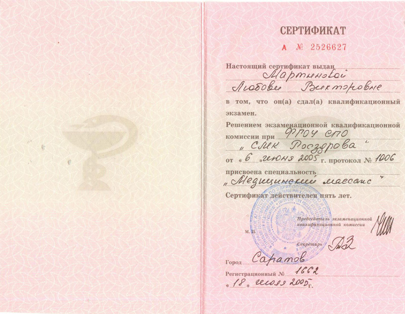 Мартынова Любовь Викторовна — мед. сестра по массажу